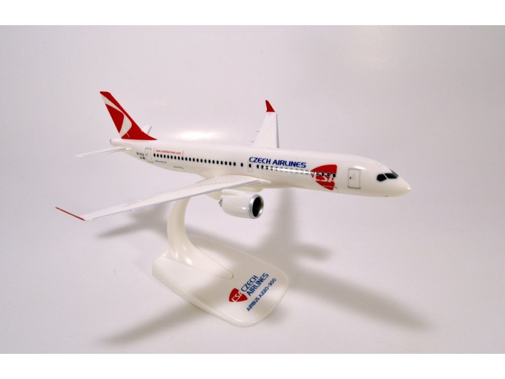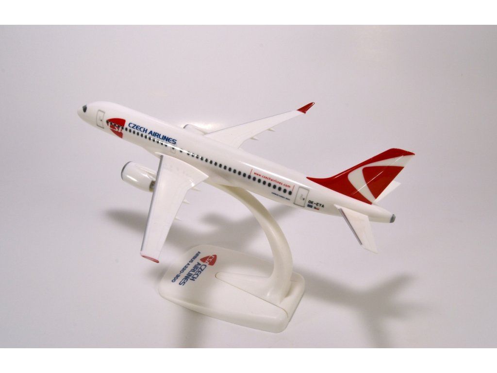 A plastic airplane model, known as snap-fit. It is a partially assembled, pre-painted model. Assembly is simple, without the need for glue. The model does not include an undercarriage but comes with a stand for easy display.